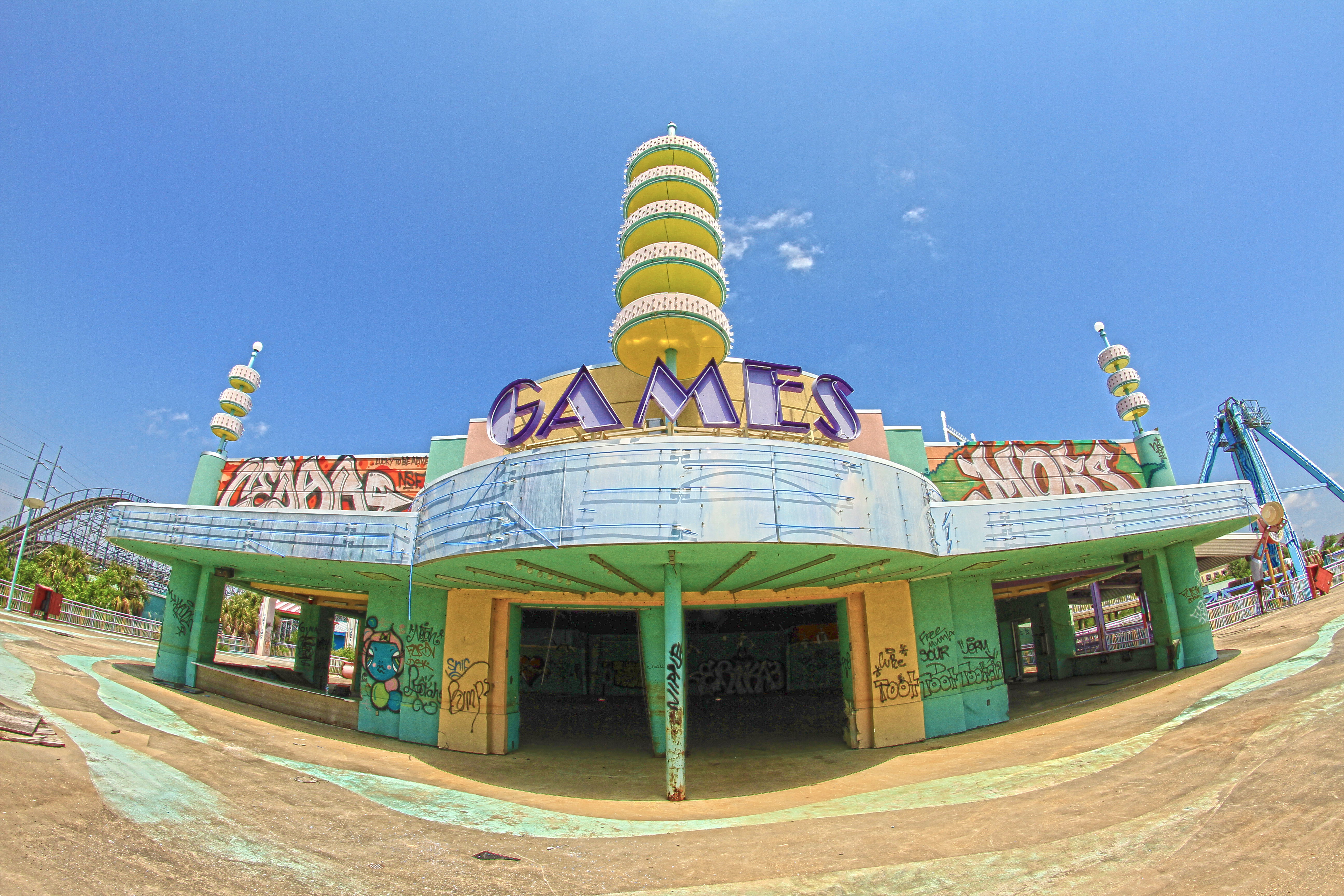 These pictures (this and the previous) were taken at the abandoned remains of Six Flags in New Orleans. It had been shut down since Katrina and blocked off with 15 foot barbed wire fence. I managed to find a back route in through some marshlands off the highway and came upon this surreal sight. I’m not sure if it is more a testament to the destructive power of man or nature, probably more the former.