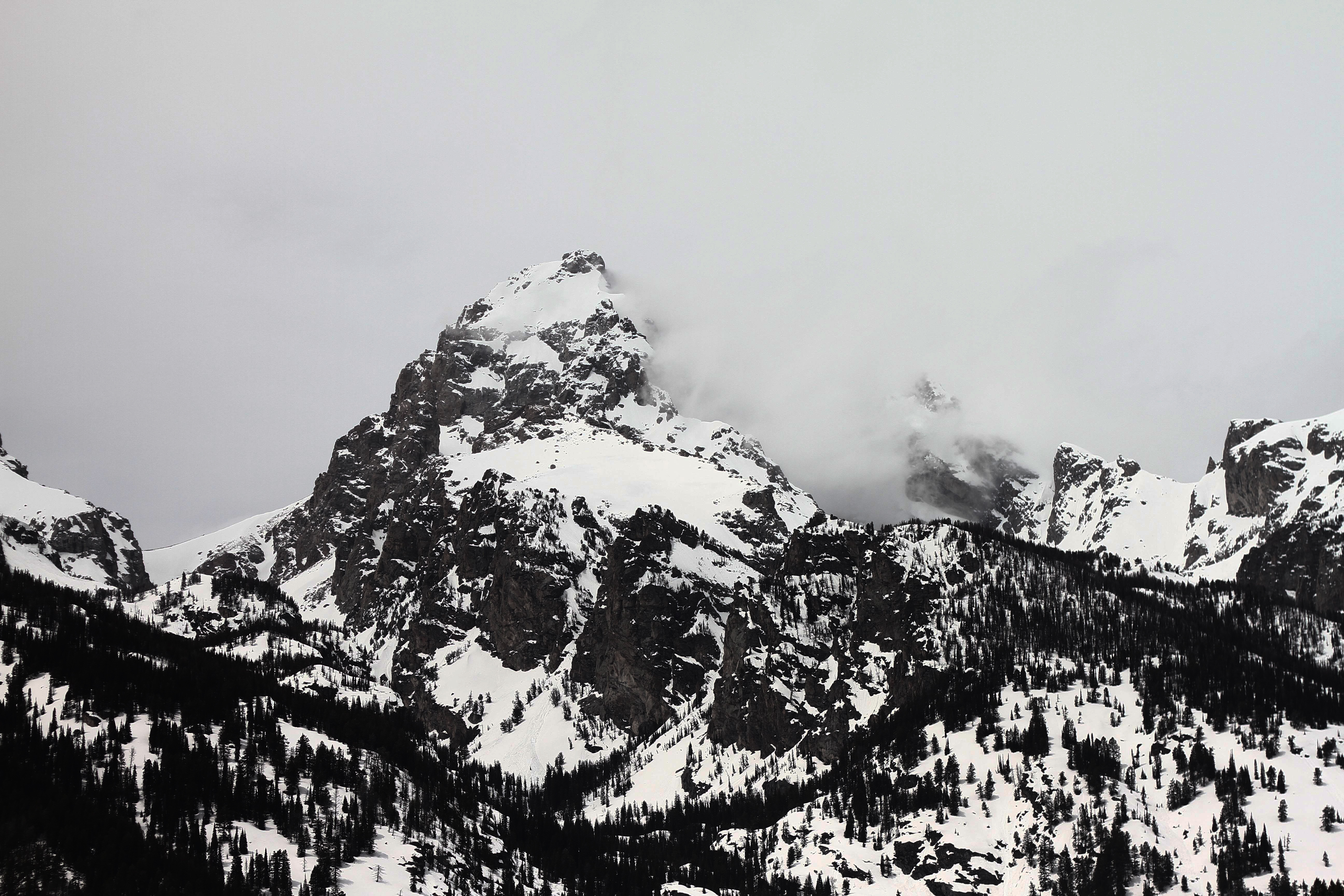 Jackson Wyoming is base camp for visits to Grand Teton and Yellowstone. It’s a town known for its advanced ski slopes and its charming boutique shops. It should also be known for its local inn/bar called the Virginian, which is where real Jackson folks go for a beer. When you exit Jackson to the south you round a hilltop and are immediately taken aback by the Grand Teton mountains jutting out from the East. The area surrounding the highway is filled elk, buffalo, marmots and even some moose. This shot shows the high winds blowing the snow off of the peak of Grand Teton 14,000 feet up. We decided not to climb it because we left our avalanche kits in the car. This is a color photo.