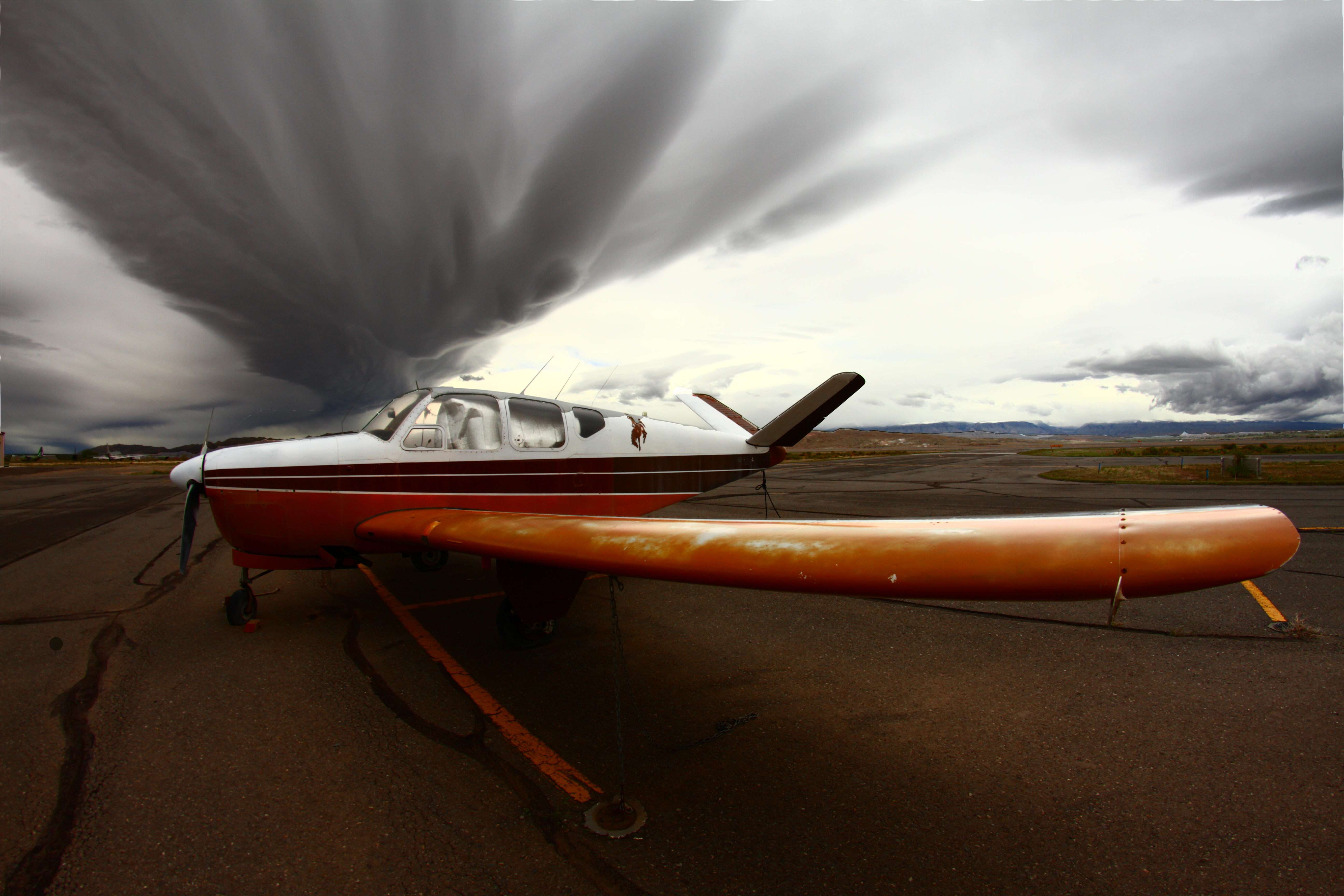 Really interesting shot, with the lines of the plane wing and cloud fingers both reaching toward the foreground. It makes me think of the tornado skies over the middle part of the country in recent days.